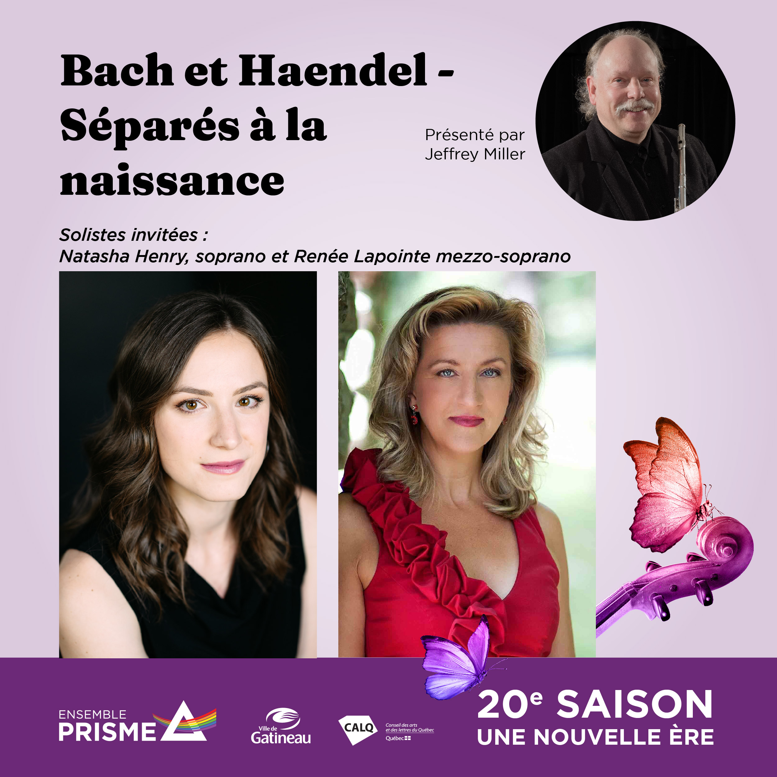 Johann Sebastian Bach et Georg Friedrich Haendel, considérés comme les deux plus grands compositeurs de l’époque baroque, ont eu un destin fascinant : nés à 30 km l’un de l’autre, à 5 semaines d’intervalle, ils ne se sont pourtant jamais rencontrés. L’un (Bach) a eu 21 enfants avec deux femmes, l’autre (Haendel) n’a eu aucune liaison connue et aucun enfant. L’un (Bach) était un modeste artisan qui n’a jamais voyagé, l’autre (Haendel) a parcouru l’Europe et a connu une immense carrière. L’un était le compositeur le plus complexe de son époque et l’autre le maître de la simplicité. Mais ils connaissaient la musique l’un de l’autre et s’admiraient mutuellement. Et leurs airs et leurs musiques instrumentales sont plus que magnifiques. À leur service, une étoile montante de chez nous, la soprano Natasha Henry et notre grande mezzo-soprano Renée Lapointe.